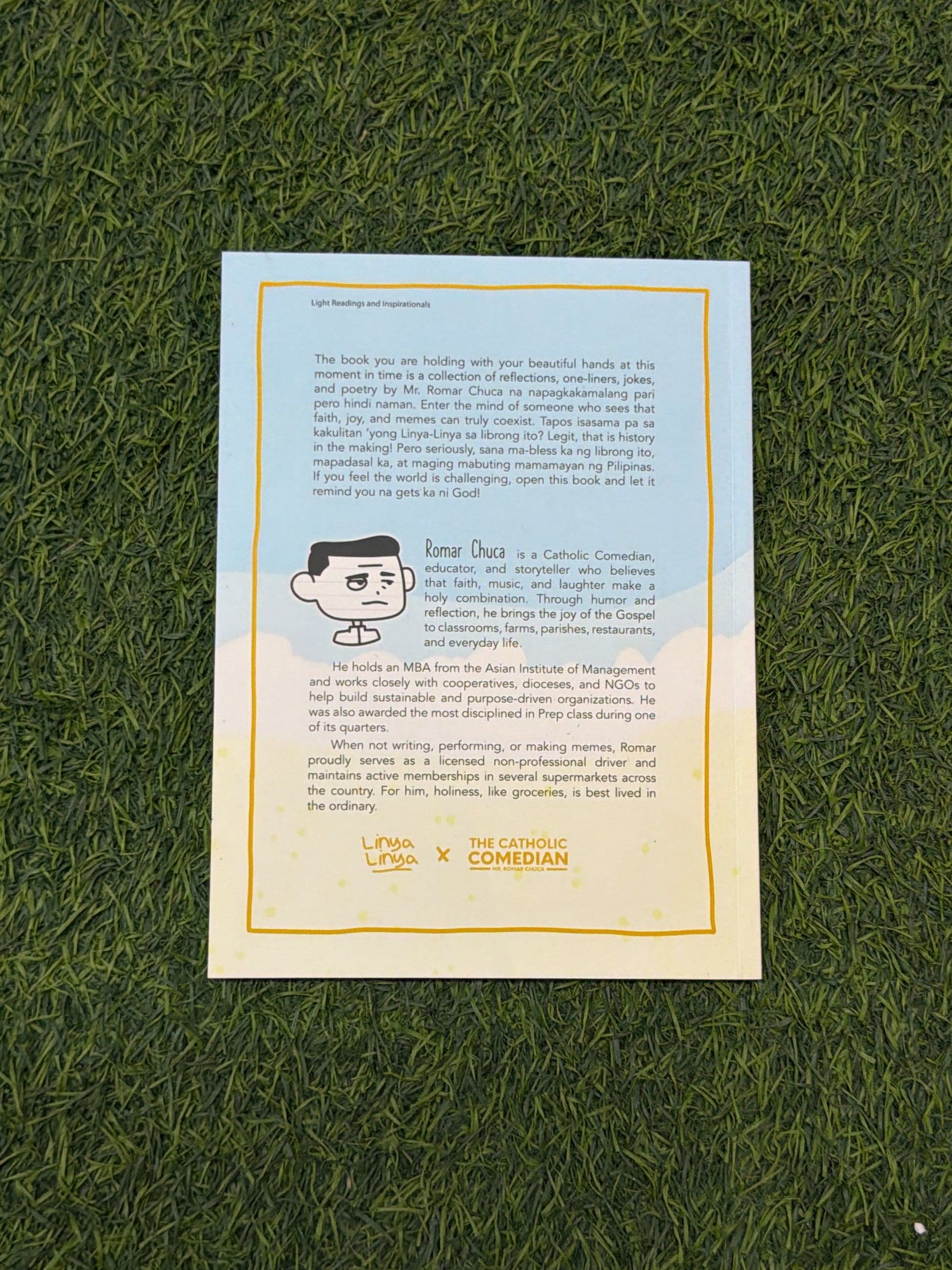 Sa librong ito, pinagsama ni Romar Chuca – a.k.a. The Catholic Comedian– ang mga biro, kuwento, tula, linya, at muni-muni mula sa buhay niya bilang choir member at missionary sa Bukidnon. Kay Romar, malinaw ang mensahe: hindi kailangan maging perpekto para maging banal— kailangan lang sumubok.