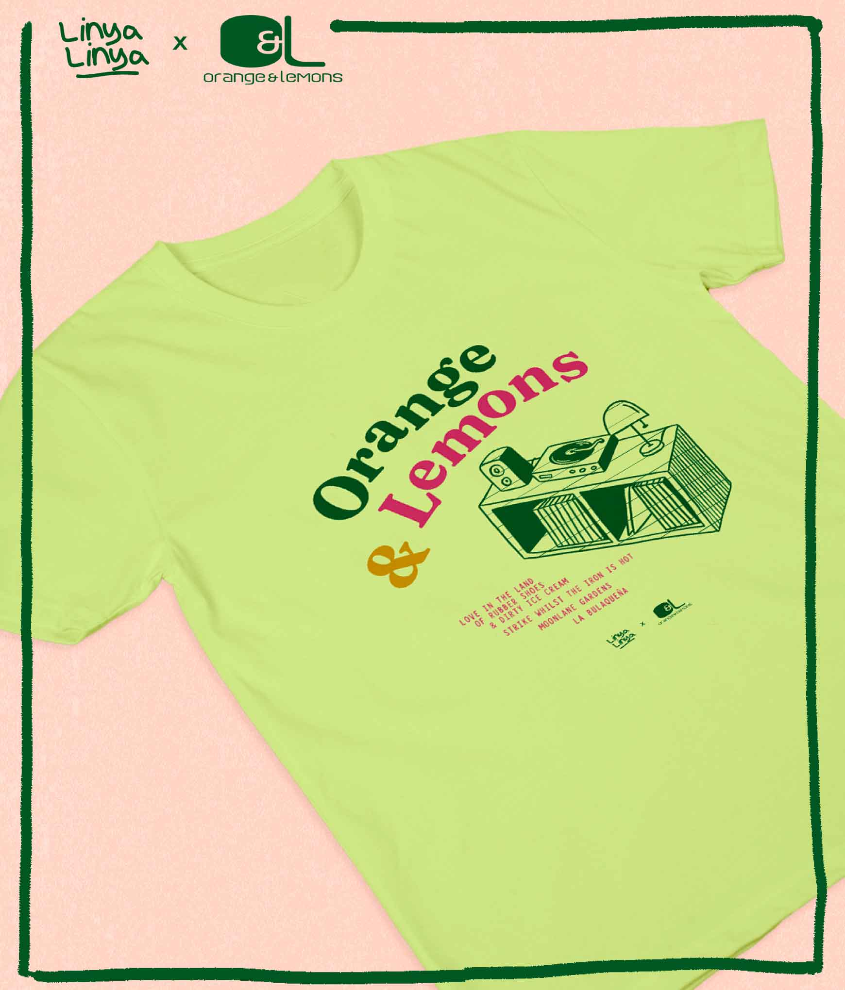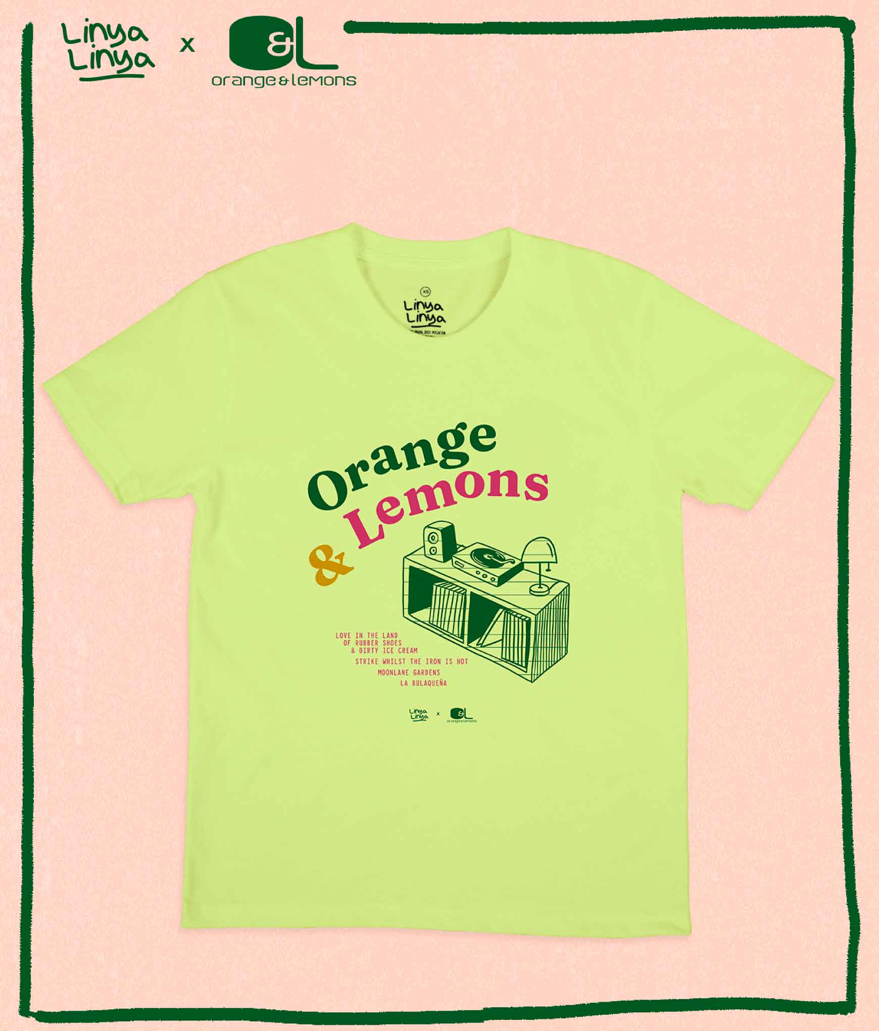 Handog ng Linya-Linya ang collab na abot-kamay kasama ang 4-piece band na patuloy na nag-iinspire sa atin umibig mula noon hanggang ngayon -- Orange & Lemons! Featuring in this shirt are their hit albums for the past 25 years kasama ang kantang nagpakilig, nagpaiyak, at nagpasaya sa atin.